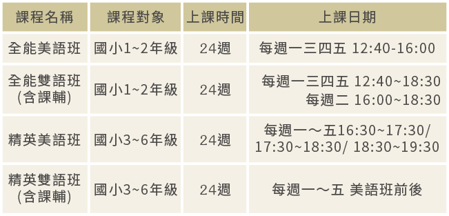 (一週五日,全外師教學)