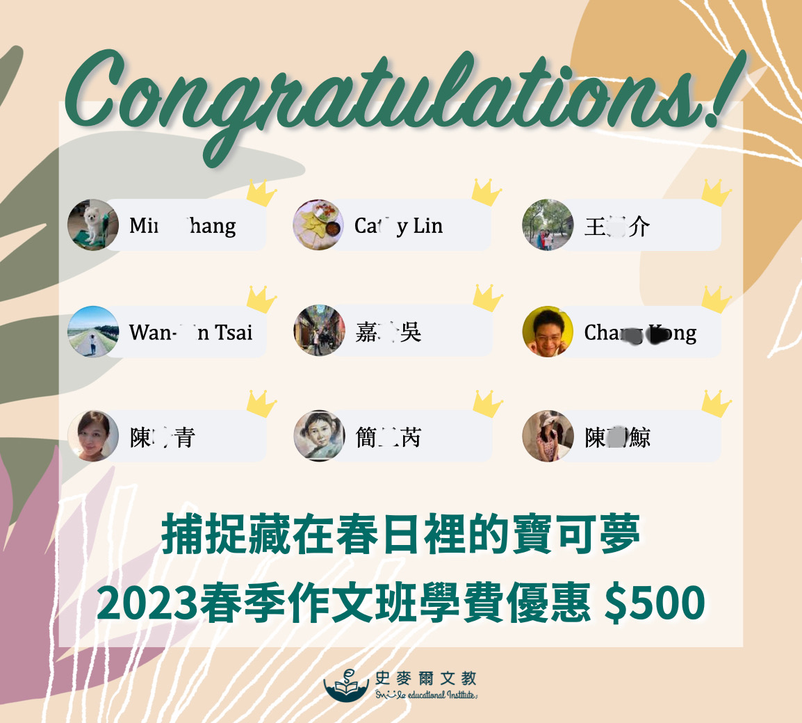 2)捕捉藏在春日裡的寶可夢/作文課程優惠$500