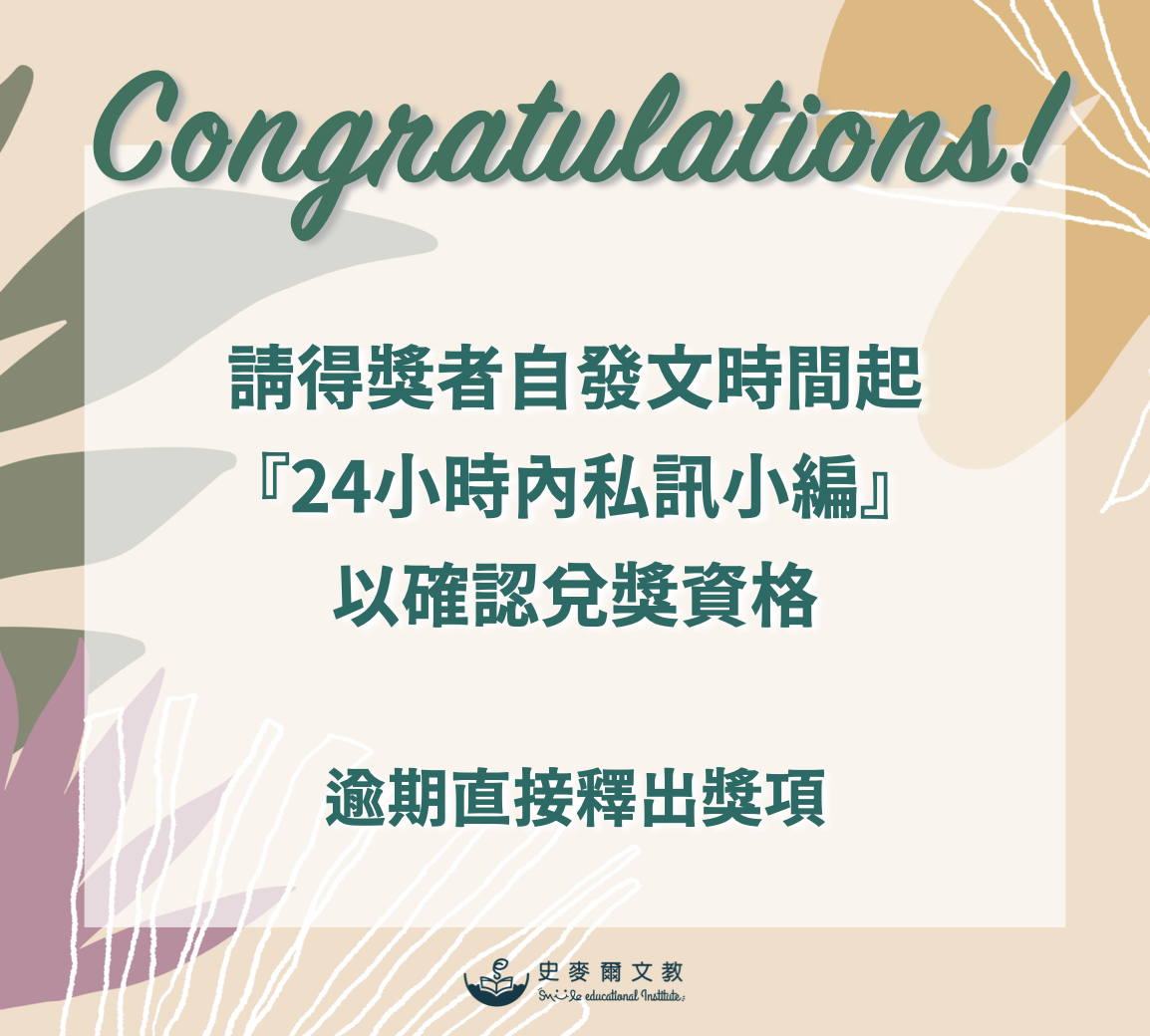 ⚡️請得獎者自發文時間起『24小時內私訊小編』,以確認兌獎資格,逾期即直接釋出獎項。